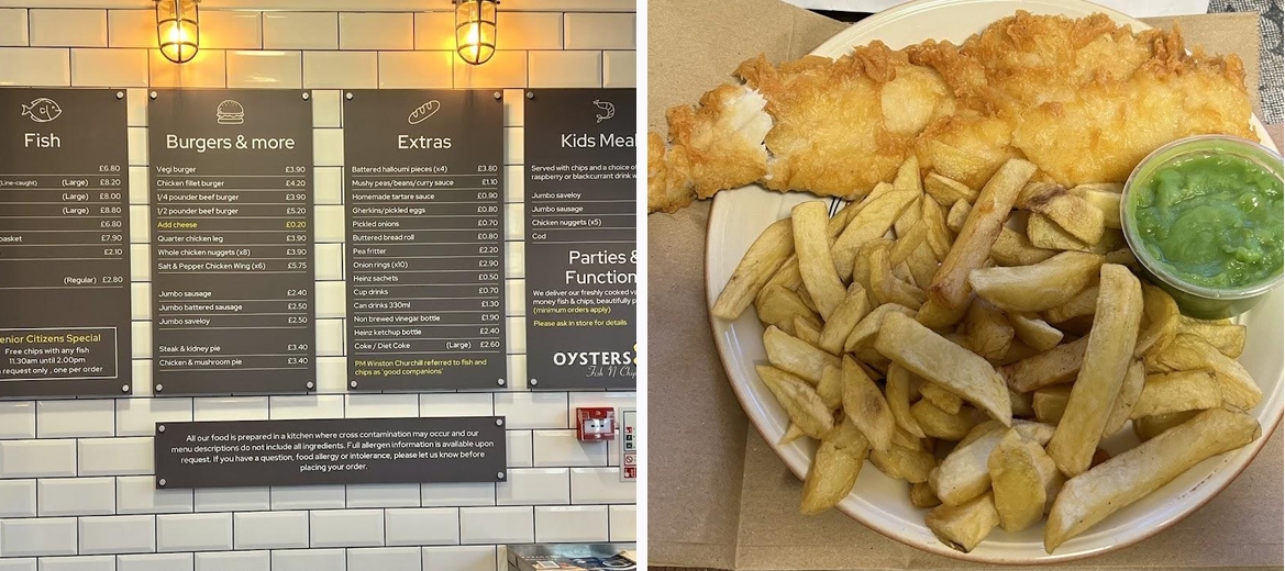 Discover the best fish and chips at Empire Fish and Chips in Camberley! Enjoy generous portions of fresh, perfectly cooked fish and crispy chips, all in a casual atmosphere with outdoor seating, takeout, and delivery options. With a kids' menu and gluten-free choices, there's something for everyone. Call us at +44 1276 26262 to place your order or make a reservation today!